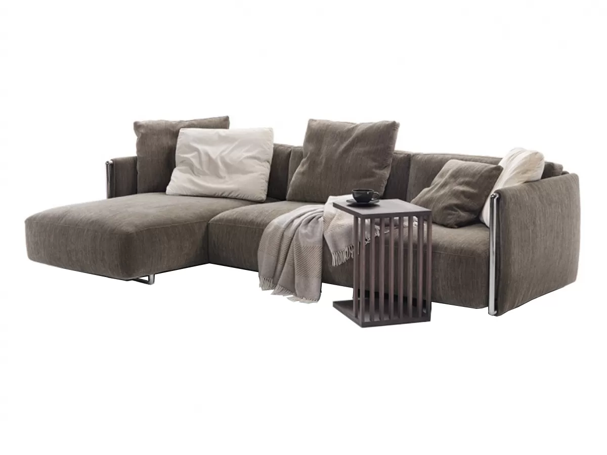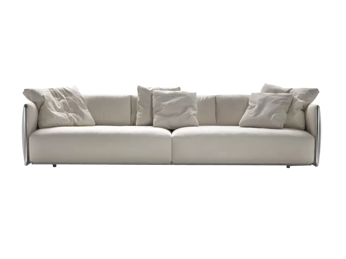 Edmond 沙发,由卡洛·科伦坡为 Flexform设计, 既具有创新性,又具有多功能性。 其底座由涂有环氧粉末的金属框架烤箱组成,而结构则采用 金属制成,聚氨酯填充物覆盖有涂层保护织物。 靠垫是羽毛,带有防碎材料嵌件。