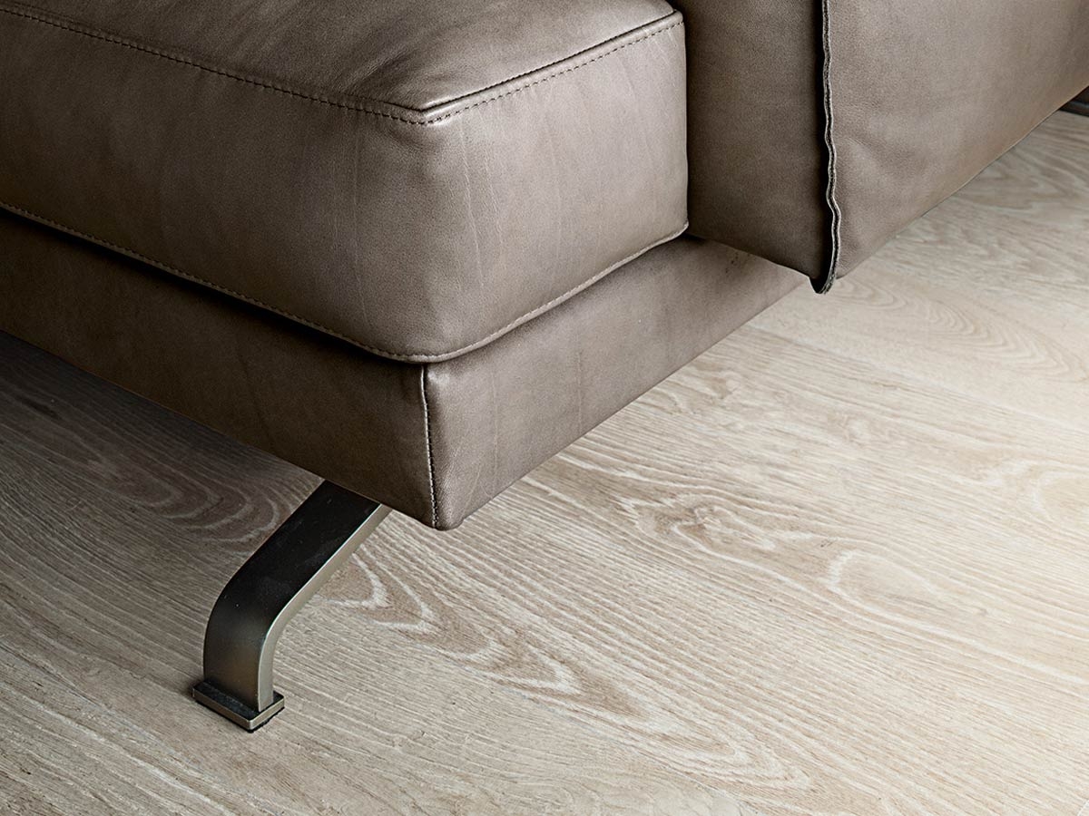 其空中金属结构的特点是交叉的弹性带,具有高caoutchouc成分,并在抛光或拉丝钢金属截面中形成两个“H”s,具有薄的横截面。这种坚固的结构支撑着用不同密度的聚氨酯泡沫填充的线性底座,座垫以其规则的平行六面体形状为特征, 位于其上。100%水管鹅绒绗缝内饰饰有特殊的挤压缝线,突出了形状。