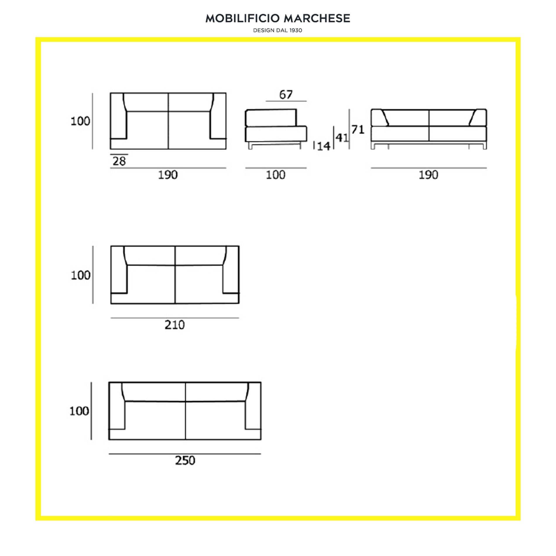 Metrocubo 有一个双镶板杨树和松树框架。填充在不同密度的聚氨酯泡沫中,覆盖有预洗和灭菌鹅绒的垫子,缝合到单独的隔间中。钢制底座。织物或皮革内饰,均可通过魔术贴紧固件完全拆卸。