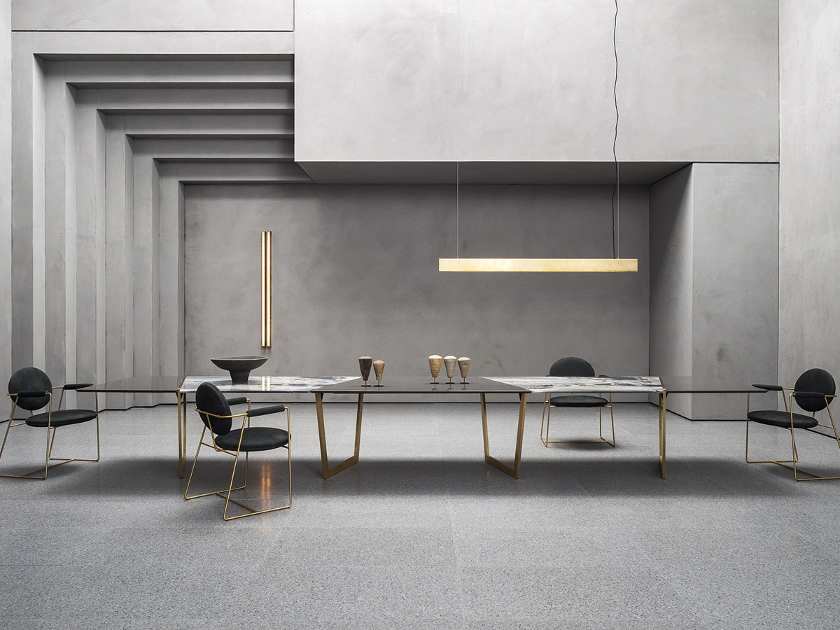 Pangea是一款新的 Baxter 表,在2018年米兰设计周上推出。一种精致的家具元素,具有极简和几何设计,使用珍贵的材料制成。木材、缎面黄铜和大理石营造出完美的平衡,为您的餐厅增添奢华的氛围。