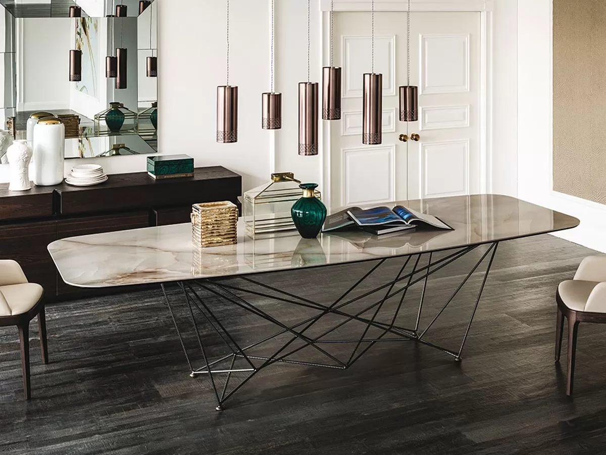 戈登 Keramik 桌由乔治·卡特兰设计,是卡特兰的新建议,采用陶瓷马尔米·卡拉卡塔,阿拉瓦斯特罗或阿德西亚的钢制底座和顶部。