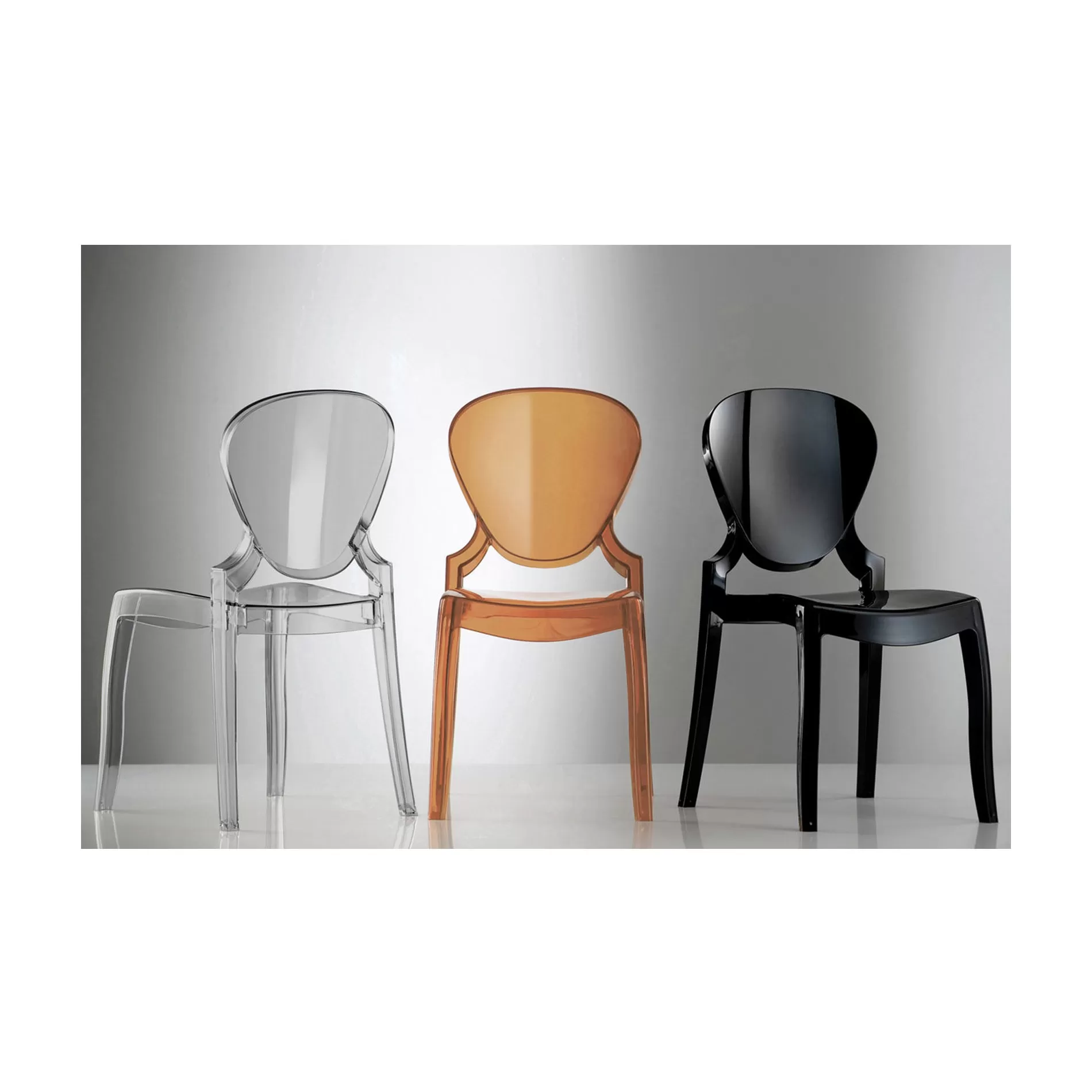 由克劳迪奥·唐多利·马可·波奇设计的 Pedrali女王椅灵感来自传统模型,但在材料和建筑技术方面引入了一丝现代设计。这把椅子时尚而现代,完全由聚碳酸酯制成。提供不同的颜色:全彩色版本或透明版本。可堆叠,适用于任何栖息地。
