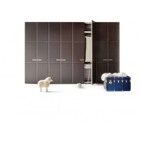 Warm 衣柜由 LEMA 设计,为您提供完全可定制的卧室解决方案。让自己被缝合的服装品质所征服,这有助于强调皮革提供的微妙衬垫,创造不对称的图形图案,为表面带来活力。金属把手镶嵌在门上,有助于模特的精致感。 不要犹豫:立即联系我们获取自定义布局。