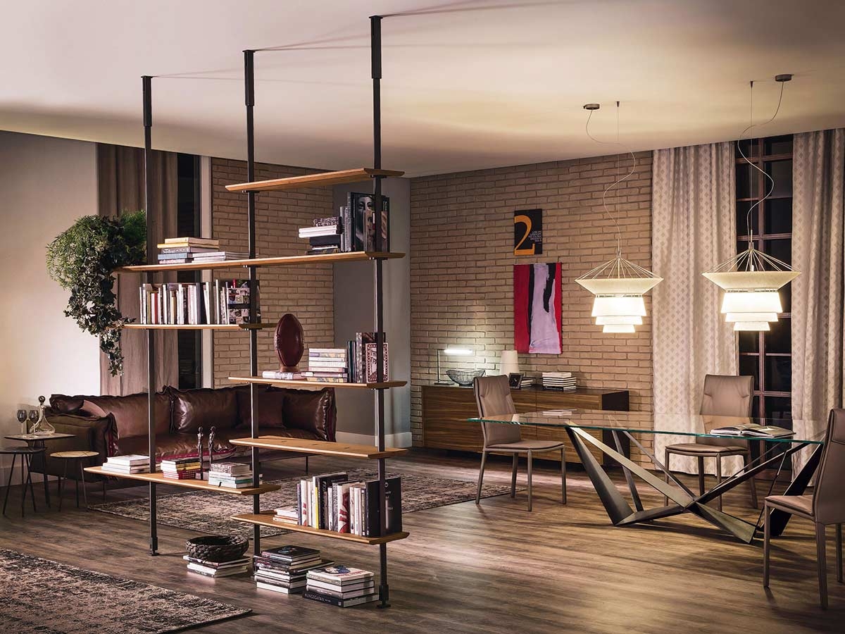 Airport 书柜既可以在 wall 使用,最重要的是,还可以用作中央房间。模块化和定制化是两个不同的特征,使可能性创造无限的组合。金属框架与木架相得益彰,营造出不同风格的独特组合。立即免费请求我们的建议:我们可以创建可自定义的布局。